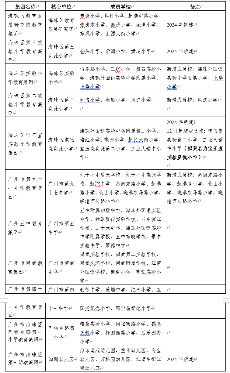 海珠区教育局相关负责人介绍,基础教育集团化办学纳入该区2024年十大民生实事,已实现四个100%全覆盖:公办初中100%全覆盖、新建学校100%全覆盖、薄弱学校100%全覆盖、学前到高中学段全覆盖。