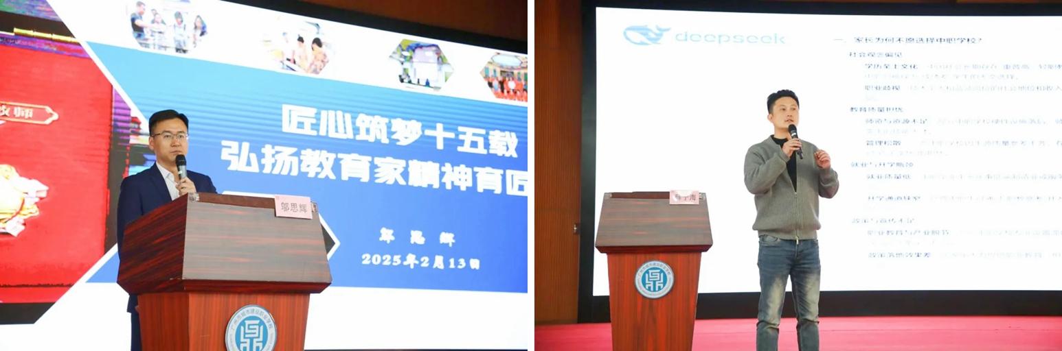 邬思辉老师从坚守初心、关爱学生、精研业务、团队协作、传承精神五个方面,鼓励教师主动学习、精研业务,践行和传承教育家精神。薛宁海老师则讲述了自己25年来的教育实践和感人故事,提出了创造机会让学生爱上教师、让学校爱上教师、让教师爱上学校的思路方法,激励大家以榜样为引领,为学生健康成长和长久发展而不懈努力。