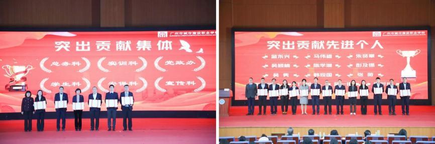 会议最后,学校表彰了新校区搬迁建设过程中的突出贡献集体和突出贡献个人,由学校党委书记陈黎靖和校长郑荣奕分别颁奖。