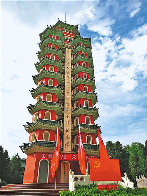 中国工农红军第一二四方面军会师纪念塔。记者 李琛奇摄