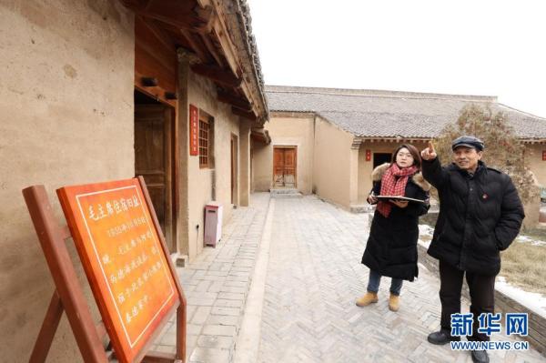 单家集单南村党支部书记单云(右)介绍毛主席带领中央红军途经单家集的历史(1月29日摄)。新华社记者卢鹰摄