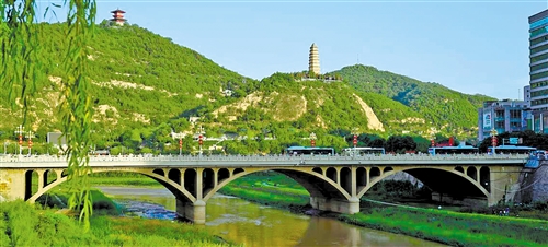 山青水碧的宝塔山延河水。经济日报-中国经济网记者 张毅 摄