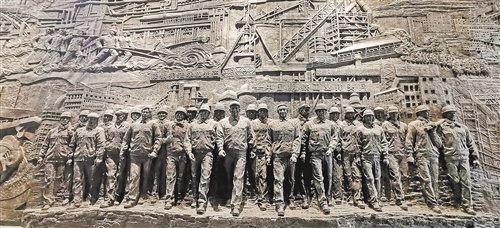 鞍钢集团博物馆大厅内的劳模群像浮雕。