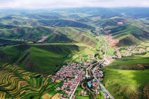 这是2020年8月12日拍摄的甘肃省甘南藏族自治州卓尼县阿子滩镇阿子滩村(无人机照片)。新华社记者 邢广利 摄