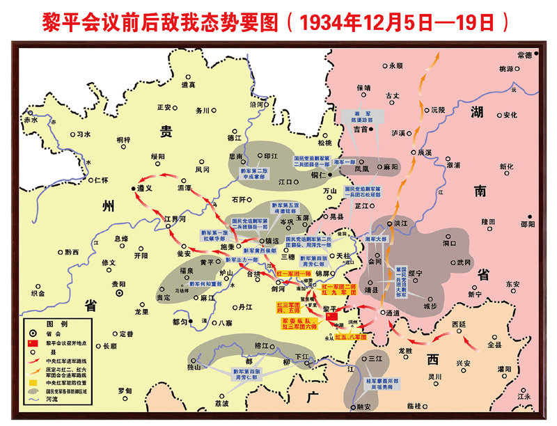 黎平会议采纳了毛泽东同志的正确主张,确定了向贵州转兵的战略决策,在关键时刻起到了统一思想、凝聚军心、团结队伍的重要作用,使红军开始摆脱被动局面,赢得了主动,毛泽东同志的军事战略意见开始受到高度重视。会后,中央红军挥戈西进,连克镇远、黄平等重镇,直抵乌江南岸。