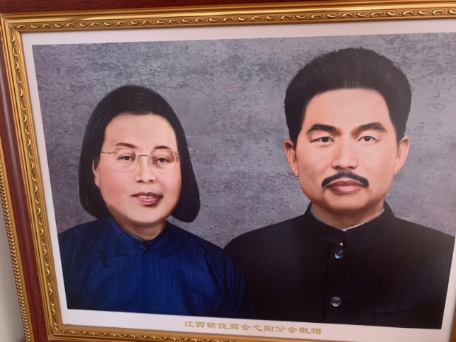 方梅家中挂着经过修复后的方志敏和妻子廖敏的合照