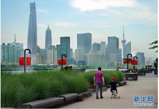 5月15日,市民在上海杨浦滨江公共空间休闲漫步。新华社记者刘颖摄