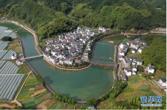空中俯瞰浙江省杭州市淳安县下姜村(2017年8月9日摄,无人机照片)。新华社记者黄宗治摄
