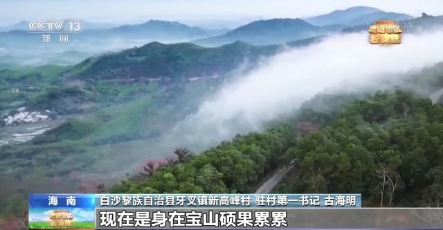 白沙黎族自治县牙叉镇新高峰村 驻村第一书记 古海明:习总书记在海南考察时指出,过去是身在宝山空手而归,现在是身在宝山硕果累累。我们将牢记总书记的嘱托,践行绿水青山就是金山银山的理念,走出一条绿色发展的道路。
