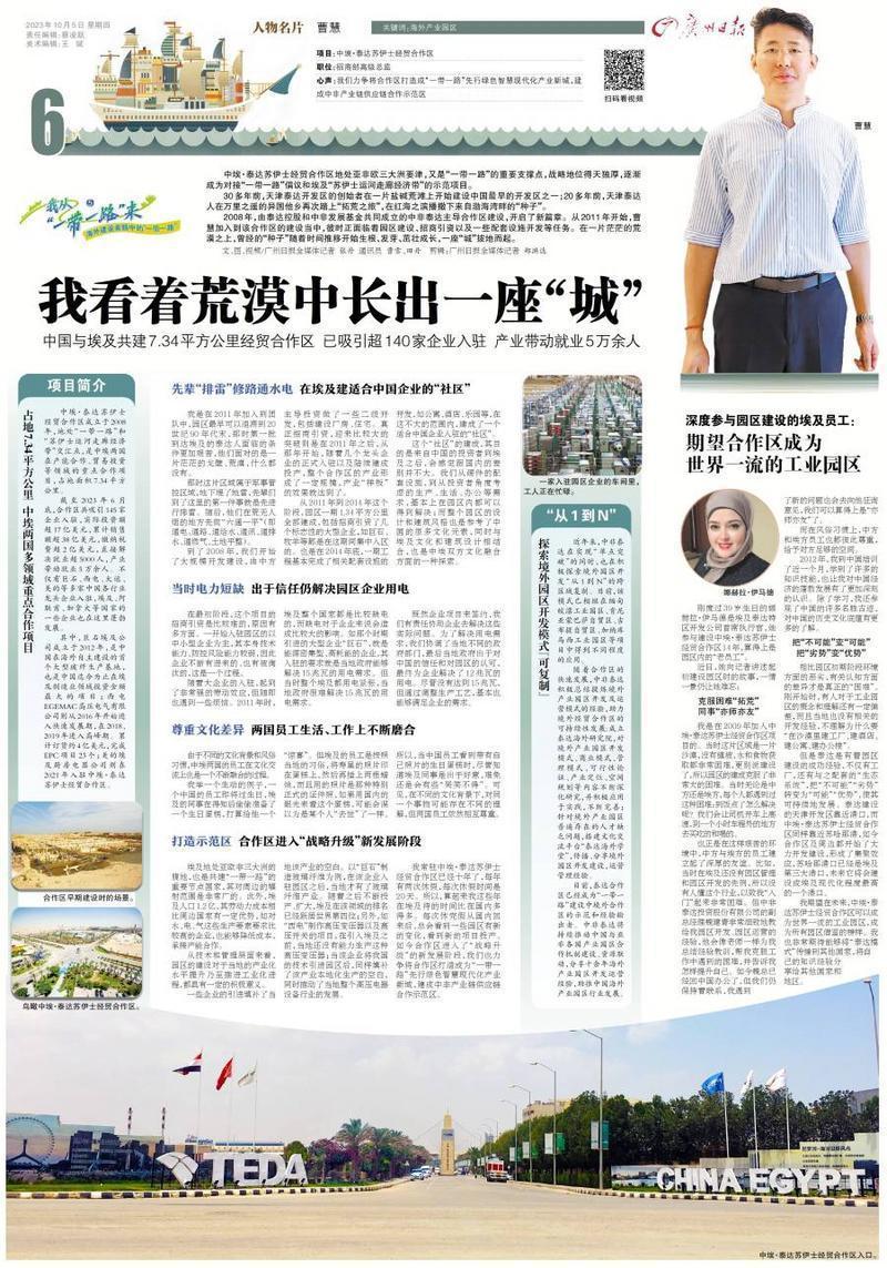 中埃·泰达苏伊士经贸合作区成立于2008年,地处“一带一路”和“苏伊士运河走廊经济带”交汇点,是中埃两国在产能合作、贸易投资等领域的重点合作项目,占地面积7.34平方公里。