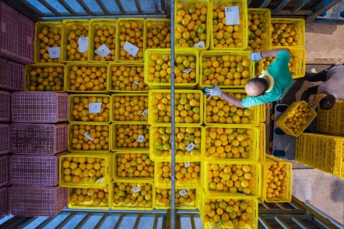 寒意料峭,却难掩脐橙热销。在国家电子商务示范基地华维电商物流园,洗果分级设备高效运转,工人有条不紊地分装,鲜橙经过选果、清洗、包装,一箱箱贴好快递面单,等待发往河南、广东、山东等全国各地。