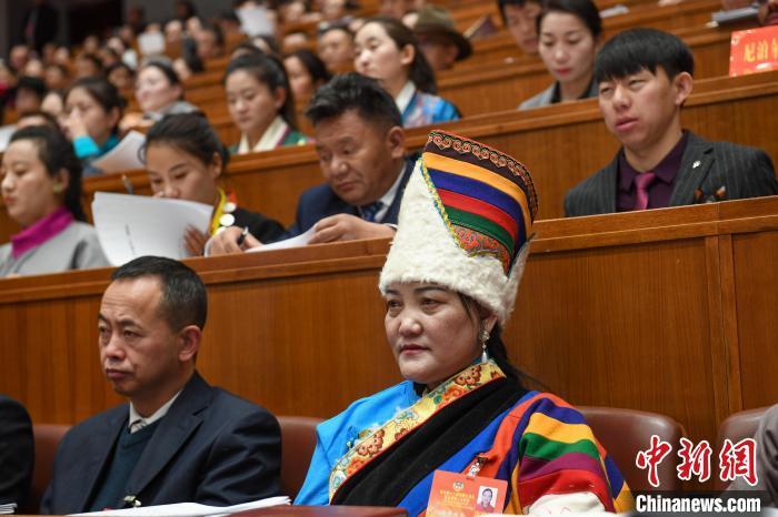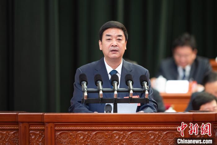 图为西藏自治区主席严金海作政府工作报告。贡嘎来松 摄
