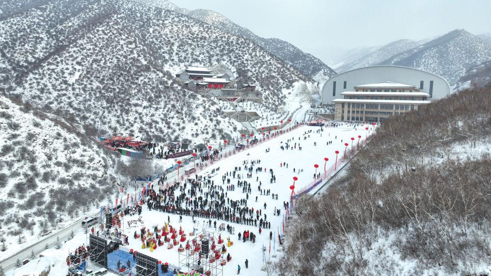 2023年12月30日,游客在内蒙古卓资县林胡古塞景区参观游玩(无人机照片)。新华社记者 贝赫 摄
