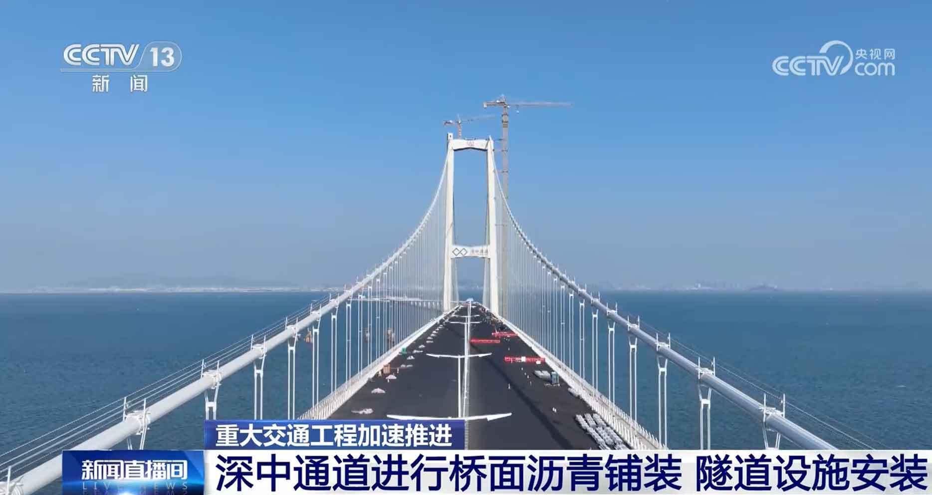 广东深中通道管理中心副主任 范传斌:预计4月份完成路面施工,5月份完成机电设备的联调联试,6月份具备通车条件。通车后大家能在桥岛隧的转换中,体验到大湾区1小时生活圈方便快捷的交通。