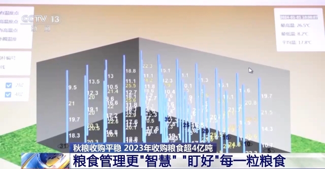 收好粮食,还要安全存储,让丰收成果颗粒归仓。各地通过建设粮食“智慧”监管平台,通过“一张网、一块屏”对粮情变化趋势进行智能监测和预警,提升科技储粮、绿色储粮水平。