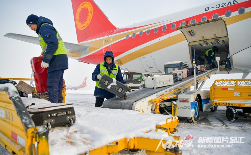 1月4日11时,乌鲁木齐地窝堡国际机场一派繁忙。机场跑道上,每隔两三分钟,就有一架飞机起降。跑道附近的乌鲁木齐航空物流园里,顺丰、邮政等快递分拣中心的物流车辆列队装货,有序往返市区。