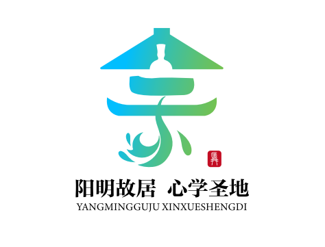 林家耀作品。释义:标志整体颜色运用了蓝色和绿色,代表了余姚四明湖水的元素和阳明故居的韵味。标志上方以王阳明的人物剪影和外轮廓形成了桥的元素,象征着余姚的通济桥,其中的两笔“横”分别代表了河姆渡遗址和阳明故居的建筑特色;下方的水滴状代表着余姚的四明湖,又代表了王阳明的心学。右下角印章中的字为余姚的简称“舜”。