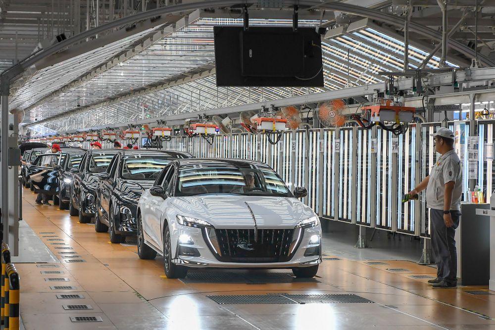 新年伊始,上海外高桥海通国际汽车码头一派忙碌景象,载着5000多辆中国制造汽车的上汽7600车位双燃料远洋滚装船,即将首航前往欧洲。在吉林长春,一汽红旗制造中心繁荣厂区内,工人正在加紧赶制出口订单……