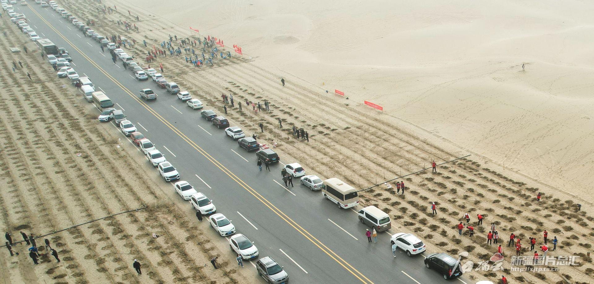 2023年11月13日,自治区在和田地区于田县召开河西走廊—塔克拉玛干沙漠边缘阻击战现场推进会(以下简称“推进会”),对塔克拉玛干沙漠锁边固沙工作进行安排部署。这是我国加强荒漠化综合防治和推进“三北”等重点生态工程建设中,继黄河“几字弯”攻坚战,科尔沁、浑善达克两大沙地歼灭战之后的第三个标志性战役,意味着环绕塔克拉玛干沙漠边缘的串串“绿项圈”终将闭合,祖国西北生态安全屏障也将越筑越牢。