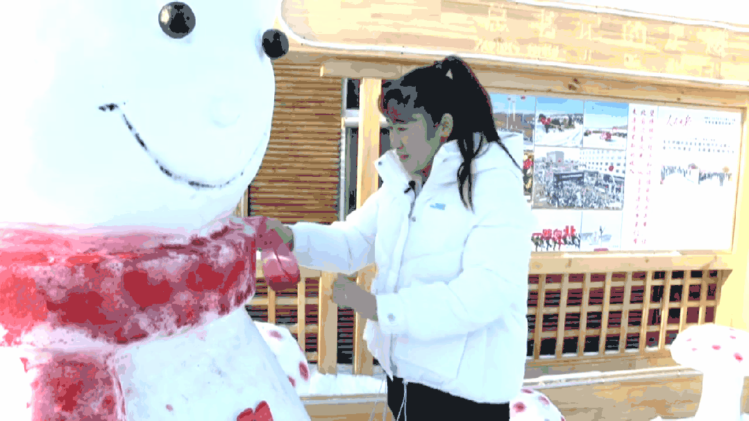 中午,民宿经营者史瑞娟趁着客人们休息,给雪人上色。今年冬天,史瑞娟在家门口堆了两个大雪人,还把小院重新布置了一番。效果挺明显,几乎天天满房。