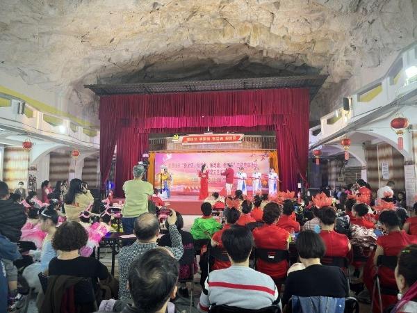 厦门思明区镇海社区在鸿山人防隧道活动空间举办的近邻课堂文艺汇演(2024年1月6日摄)。新华社记者付敏 摄