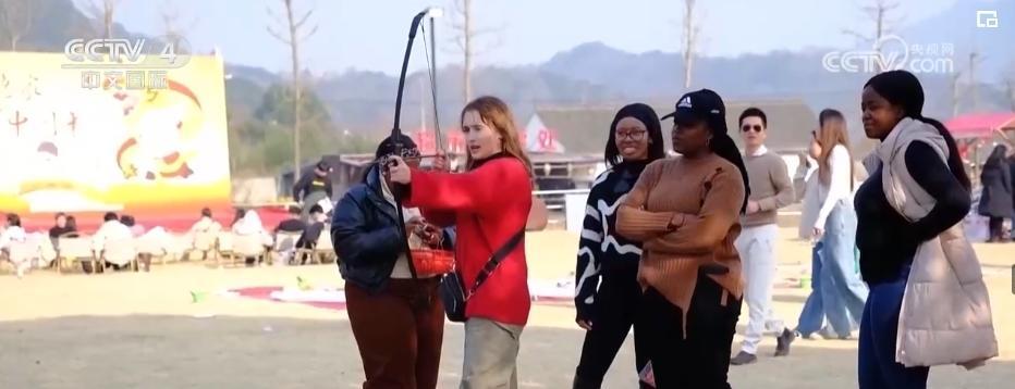 在浙江省余姚市大隐镇,猜灯谜、舞龙、写福字、祈福投壶等传统文化活动,吸引了众多游客。孩子们现场体验制作当地各种特色小吃,为新年讨个好彩头。浓浓的“年味”还吸引了不少外国友人。