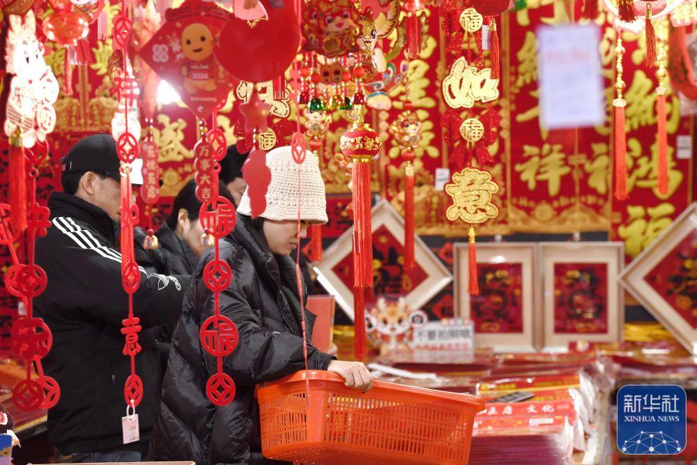1月21日,市民在河北石家庄新乐市一家超市选购新春饰品。新华社发(贾敏杰摄)