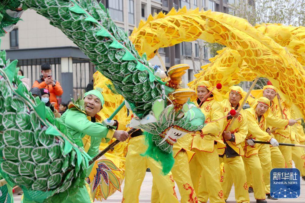 1月21日,浙江省湖州市德清县康乾街道金鹅山村村民在表演舞龙。新华社发(谢尚国摄)