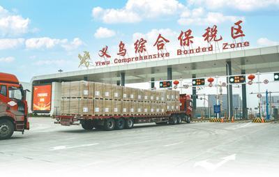 集卡车驶入义乌综合保税区。记者 刘军国摄