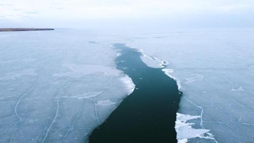 这是2023年4月17日拍摄的呼伦湖开湖景象(无人机照片)。新华社记者 王楷焱 摄