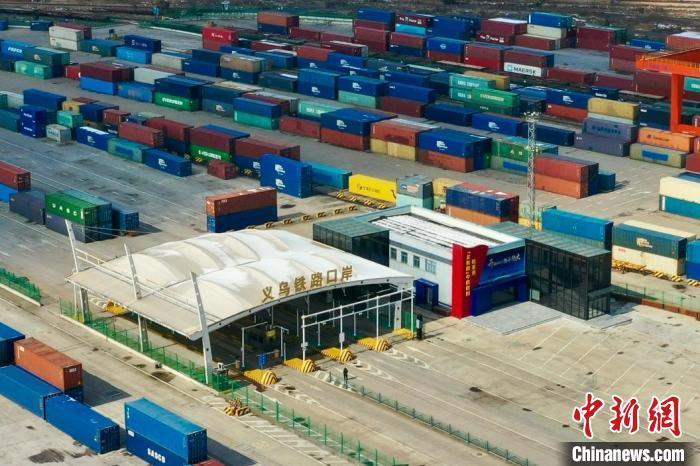 航拍义乌铁路口岸货柜堆积。董易鑫 摄