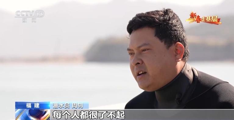 潜水员 周钊:习主席说,每个人都是新时代的奋斗者,每个人都很了不起,我觉得这句话说得非常好。我们这个工作看似平凡,其实也不平凡,也是大桥必不可缺少的一部分。我一直都在奋斗,一点都不敢松懈,争取挑战一下自己,看自己能不能去学个混合氧潜水,下个70米80米。