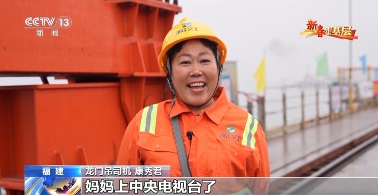 龙门吊司机 康秀君:孙雪,看没看到妈妈,没想到吧,妈妈上中央电视台了,没想到我也这么开心。但有一点可惜了,就是春节妈妈不能陪你过年了,但是过了年,休假妈妈陪你去鼓浪屿,这是咱俩的约定。