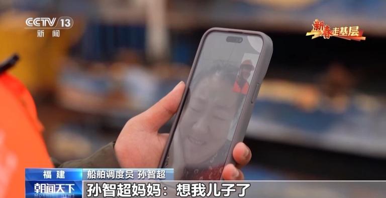 船舶调度员 孙智超:你有没有想我啊?(孙智超妈妈:当然想)今年过年回不去了。等过完年我才能回去。然后今年项目上又给发了一些奖金,到时候拿回去给你们。到时候买菜多买点吃,过年不要省着吃,不要省着喝。