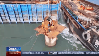 总台记者黄珊:我现在所在的位置就是一根钢管桩的顶部,现在正是退潮的时候,这根钢管桩露出水面的高度大概是有两三米,而在水面之下还有60多米。接下来,潜水员要下潜到海床面上,对钢管桩的底部进行一个切割作业。