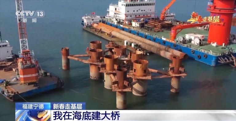今天我们一起到火热的建设现场,认识一群特殊的工作人员。宁上高速宁德霞浦至福安段,是国家公路“十四五”发展规划建设项目,正在建设的东吾洋特大桥是宁上高速的重点控制性工程。现在,大桥的深水区桥墩桩基已经施工完成,即将转为桥墩承台施工阶段。这几天,由六名潜水员组成的水下切割小分队,正在这里进行水下的钢管桩切割作业。接下来,我们跟随总台记者,认识其中一名90后潜水员,一起来看他是如何在海底建大桥的。