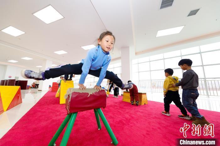 孩子们在体育馆进行跳马训练。乌力更 摄