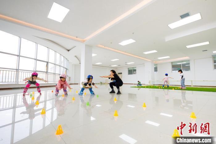 轮滑老师教孩子们学习轮滑。乌力更 摄
