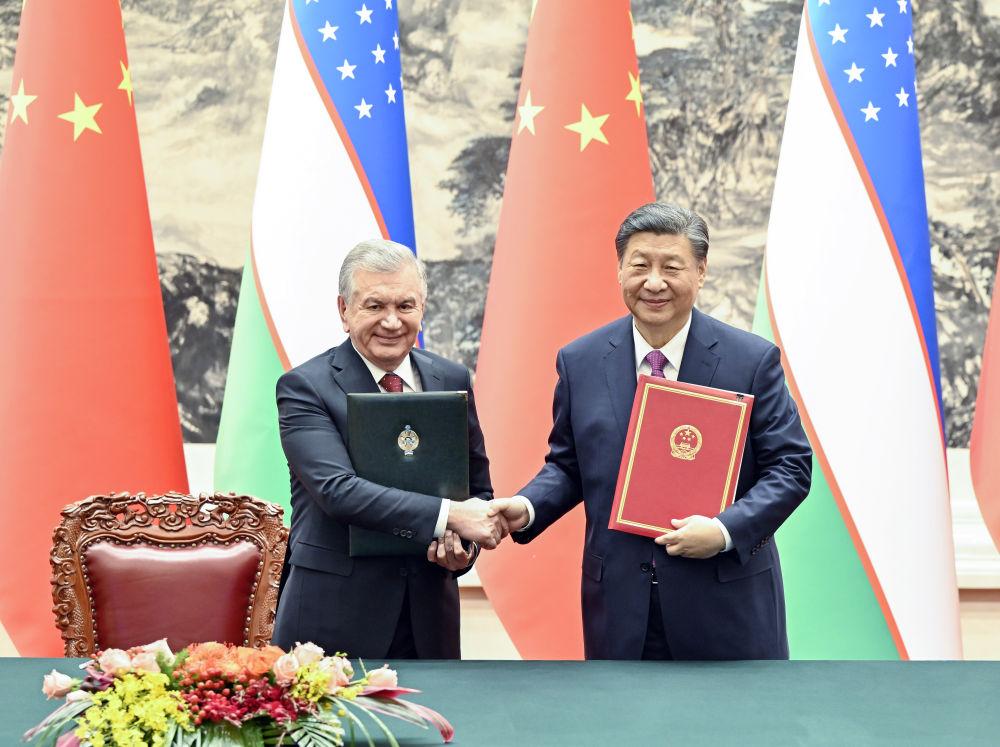 1月24日下午,国家主席习近平在北京人民大会堂同乌兹别克斯坦总统米尔济约耶夫举行会谈。会谈后,两国元首签署并发表了《中华人民共和国和乌兹别克斯坦共和国关于新时代全天候全面战略伙伴关系的联合声明》。