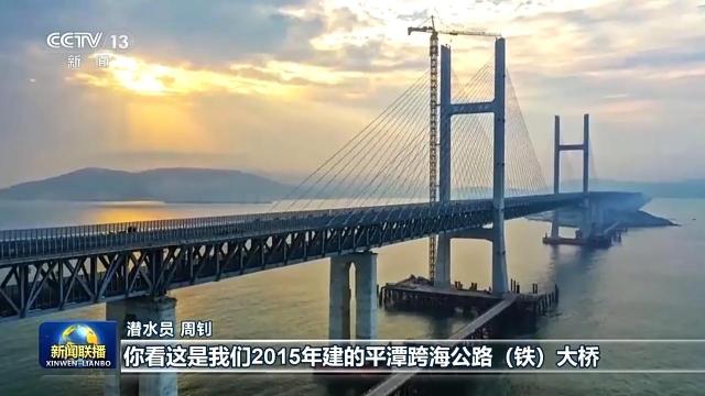 潜水员 周钊:你看这个是我们2015年建的平潭跨海公铁大桥,这个就是我们2013年建的嘉绍大桥等等,多得很。外国人都说我们中国人建桥厉害。