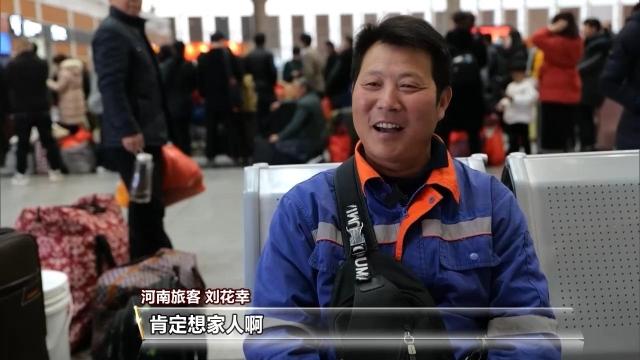 河南旅客 刘花幸:肯定想家人啊,你想,孩子、老婆、父母,是不是?过春节早点回去在家多陪他们。什么叫家啊,父母在家,那永远就是我们的老家。