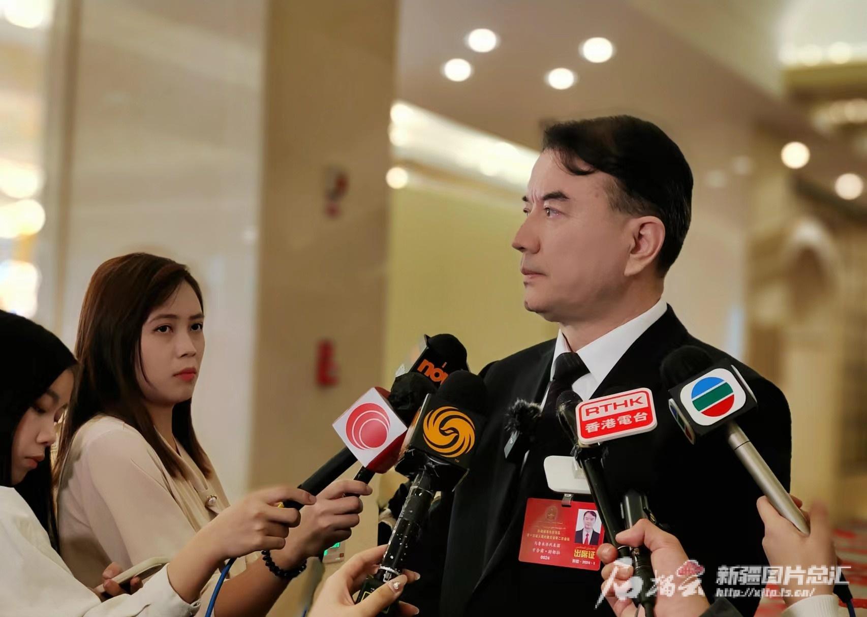 港区全国青联委员陈晓锋接受中外媒体记者采访。天山网-新疆日报记者 范琼燕摄