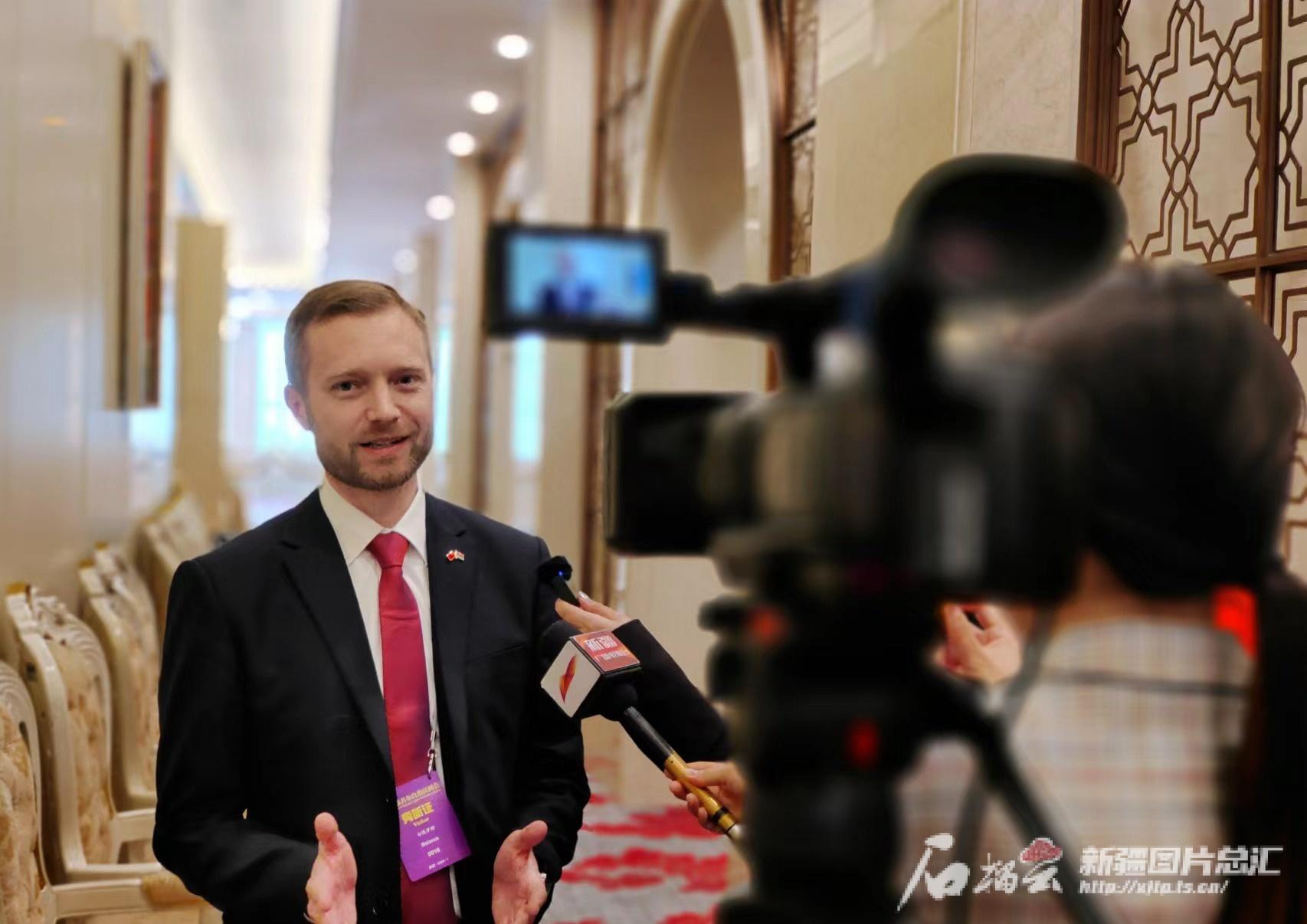 在新疆两会上,白俄罗斯驻华大使馆参赞叶夫根尼·里亚布菜夫接受新疆媒体记者采访。天山网-新疆日报记者 范琼燕摄