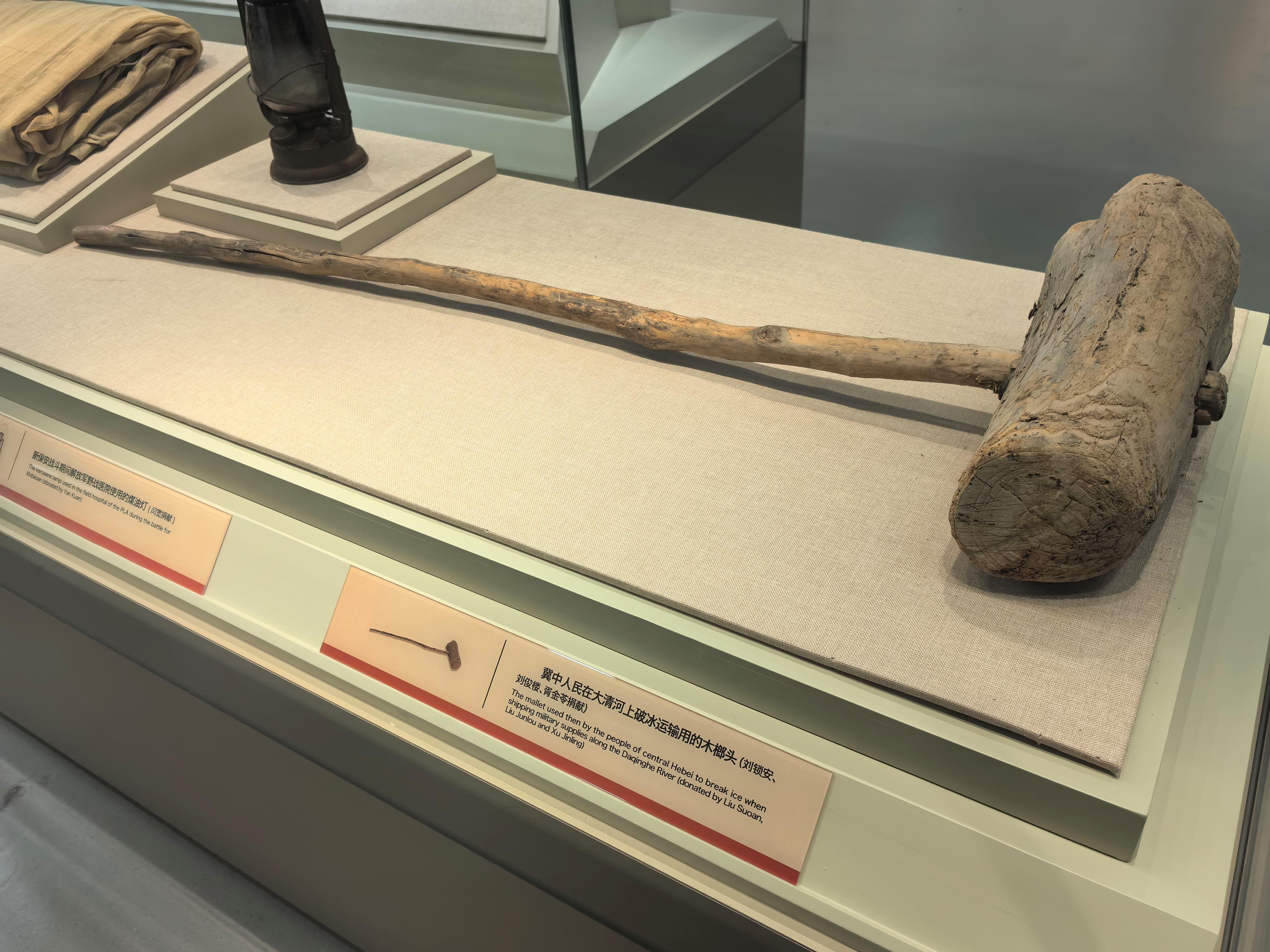 △冀中人民在大清河上破冰运输用的木榔头。(总台央广记者潘毅拍摄)