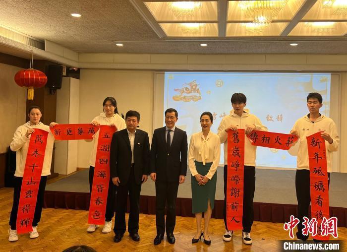 此访适逢中国龙年春节前夕,同学们还带来了用毛笔书写的春联——上联是“新年砥砺看后浪”,下联是“旧岁峥嵘谢前人”,横批为“薪火相传”。