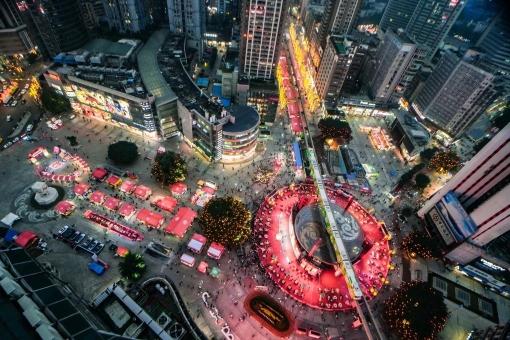 2024重庆火锅年欢节吸引众多消费者(无人机照片)。(尹诗语 摄)