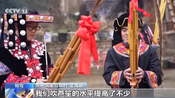 贵州凯里甘坝村金海朝:经过专业老师的指导,我们吹芦笙的水平提高了不少,也有底气了。现在我们上火车为大伙表演芦笙节目。