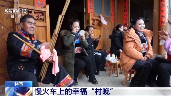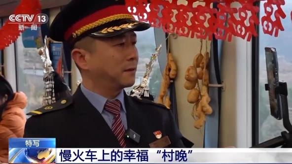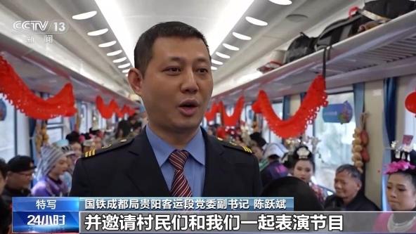 国铁成都局贵阳客运段党委副书记 陈跃斌:今天我们特意把列车装饰一新,并邀请村民们和我们一起表演节目。目的是让搭乘慢火车的村民,感受到生活的美好和幸福,一起迎接龙年的到来。