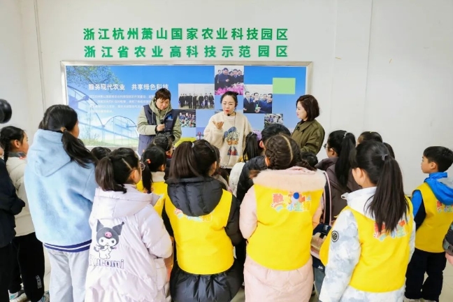 “传化集团的创始人是谁?”“传化集团研发的第一款产品是什么?”……来到传化生物的第一站,小主播们倾听了传化集团的创业故事,探寻了这些问题的答案。
