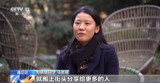 郑晓慧同学 马若萌:我看到了郑晓慧的表演以后觉得很受鼓舞,我也可以加入,把一些比较好的,带有民族特色的音乐和形式搬上街头,分享给更多的人。